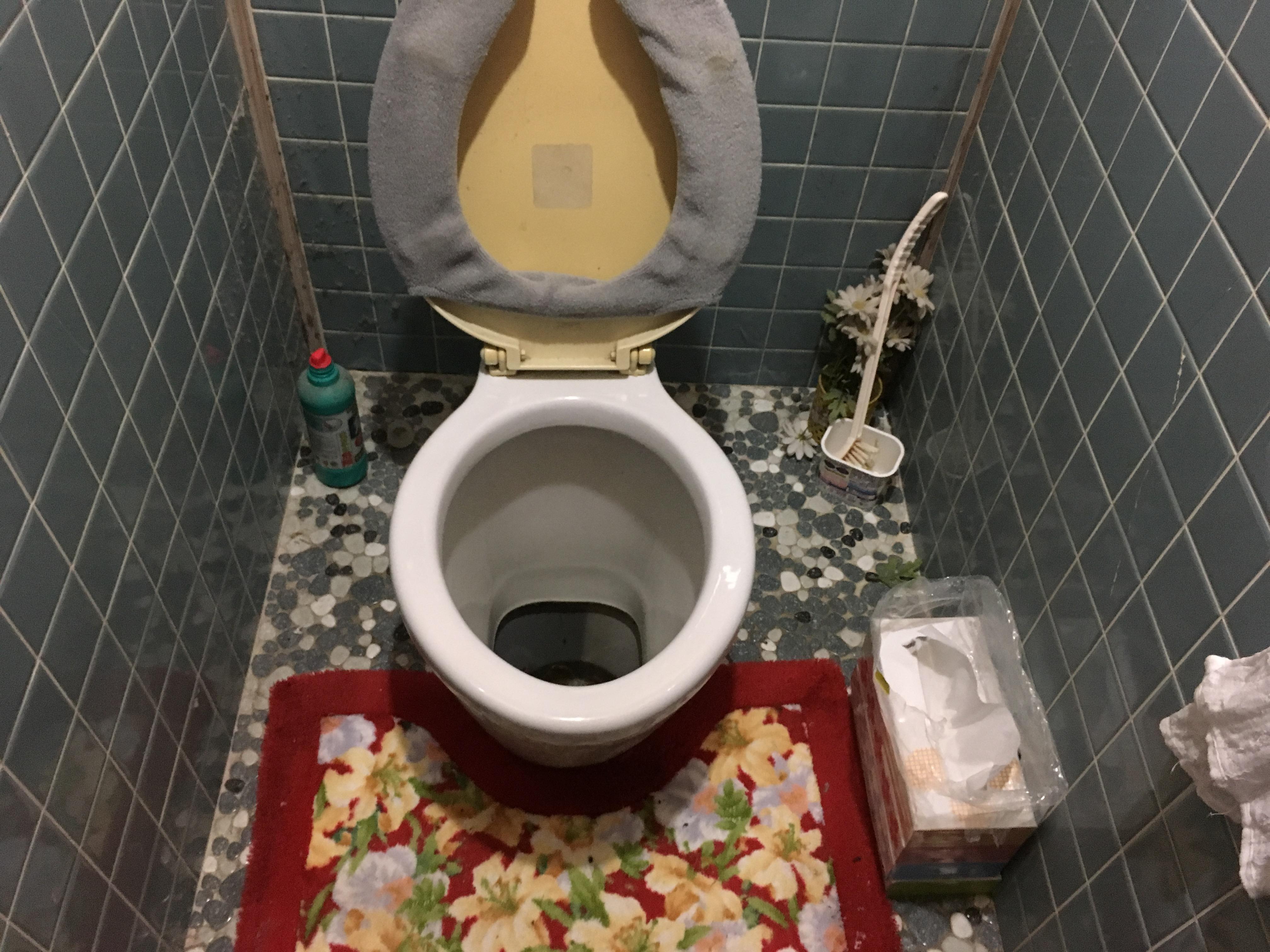 下水道を繋げていなかった為、汲み取り式のトイレでした。床はタイルでヒヤッとして壁もタイルで掃除がしにくいとの事でした。