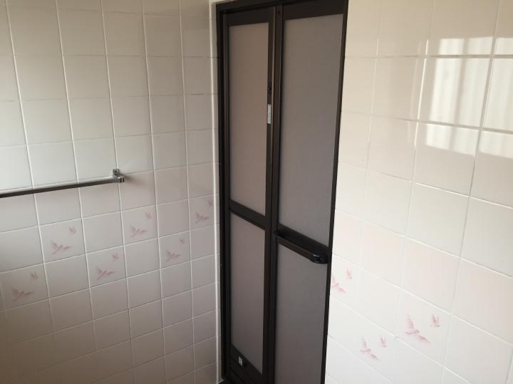 浴室の入り口は折れ戸が壊れてきちんと開閉しない状態でした。
