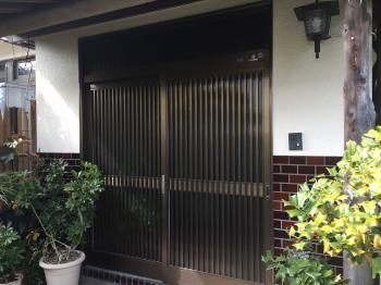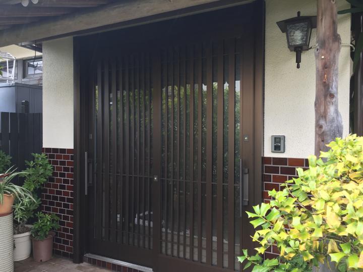 既存の玄関枠を見えないよう新しい玄関枠で被せ、扉部分を設置し調整しました。