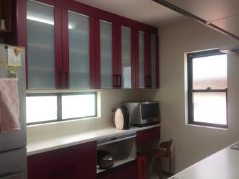 | ご提案内容 | 新しく上げ下げ窓を設置して、明るく風の通る空間にします。家電収納も、使いやすいように高さとレイアウトを決めていきます。 |