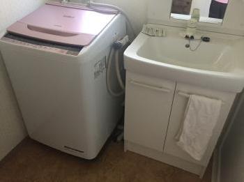 化粧台と洗濯機の位置を変更しました。 同じ広さでも置く場所によって空間が広く感じられます。