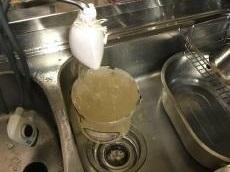 配管洗浄「アクシル」を行い、配管をキレイにしてから工事施工に取りかかりました。