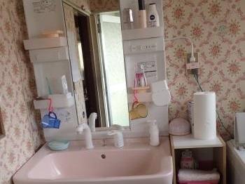 | ご提案内容 | 洗面台も古くなったので取替えたい、床の掃除がしにくいので新しくクッションフロアに張り替えたいとのご要望だったので、合わせて新しくしていきます。 |