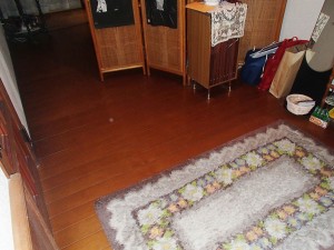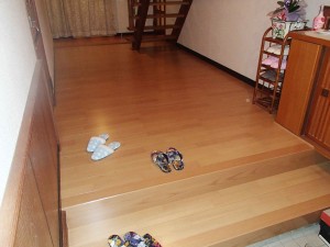 床と廊下は、フローリングを貼って補強してます。