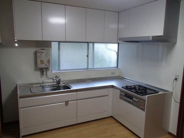 既存キッチンの形がL型で、壁などは和風の砂壁でした。