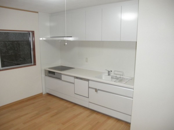 | ご提案内容 | Ⅰ型のキッチンを設置し、既存の窓の位置が新しく設置するキッチンに被ってしまう為、位置を変えて設置しています。依頼して頂いた、奥様が妊娠しており、今よりも使いやすくて、明るいキッチンにしたいとの事で、施工後のキッチンは奥様の希望で真っ白なキッチンになり、床や壁も明るいものを選び、部屋全体がとても明るくなりました。 |