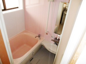 | ご提案内容 | INAXのラ・バス1216タイプです。ピンク色の浴槽で浴室全体が明るくなりました。面倒なタイルの掃除もなくなり、サーモフロアで冬もタイルが冷たい!なんてことはありません。お客様も大変満足されていました。 |