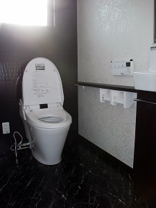 お客様のセンスがピカリと光る、高級感溢れるトイレにイメージチェンジです。アウトレット商品を上手に使えば、この予算でもここまでのリフォームが可能です。お客様にも大変喜んで頂けました。