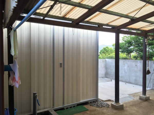 | お客様の要望 | 既製品の倉庫が古くなったのでもっとサイズを大きくして使いやすい物に取替えたいとご依頼いただきました。 |