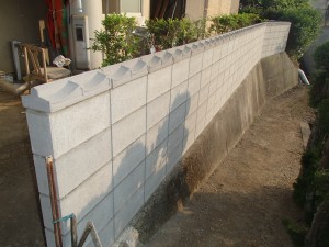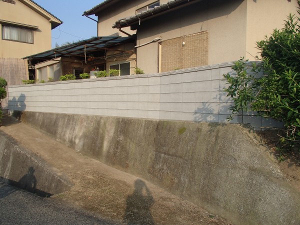 | お客様の要望 | 植栽を切って、スッキリさせたいと、お声掛けを頂きま した。道路から見えにくいようにして既存のコンクリートの形に合 わせて塀を設置しております。 |