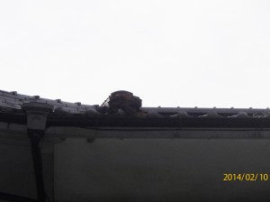屋根の鬼瓦が落ちてしまい、下にある瓦が割れてしまいました。
