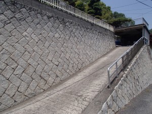 | お客様の要望 | お家の前に長い坂道があり、手摺なしで一人で登るのが きつくなってきたから、と工事依頼を頂きました。坂道は16mほどあり、坂道の上がり口からお家の前まで手摺を取付しました。 |