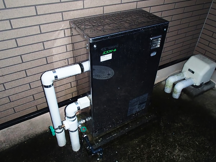 タンクがへこんでおり、ボイラー本体も取り替え時期でした。