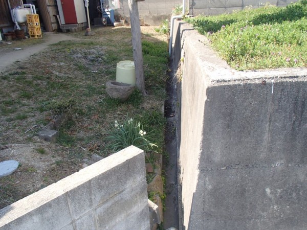 植木等を撤去し、ブロックを建てる箇所にしっかりと基礎をしてブロックを積んでいます。