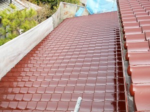 以外壁塗装工事をしている途中に、どうせなら屋根も塗って欲しいが、釉薬瓦なので、他社さんには塗装は不可能と言われたが、瓦の吹き替えは、予算的に厳しいのでと相談を受けました。