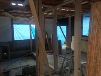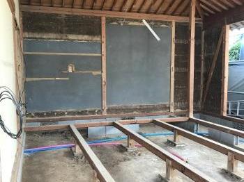 床や壁に傾きがあったので、全て解体して下地からやり直して工事を進めました。