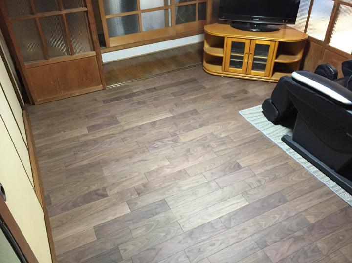 床は廻りの敷居と高さを揃えバリアフリーになるよう施工しました。