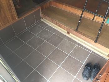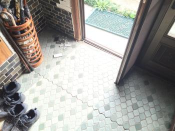 玄関の土間は地盤沈下してひびが入っています。