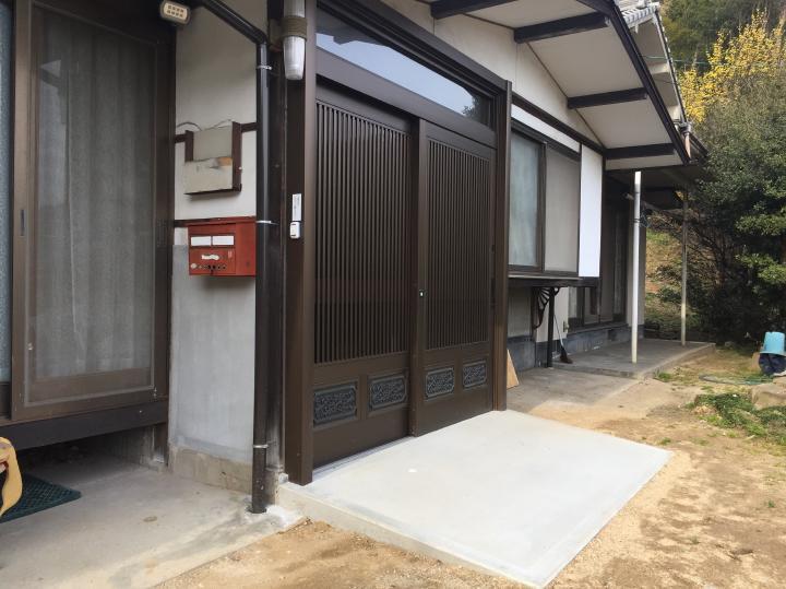 玄関の幅は拡張し、スロープも作成して車いすでも楽に通れるようになりました。