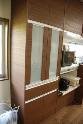 家電収納や食器棚もキッチンのカラーと合わせて設置し、一体感のある空間へと変わりました!