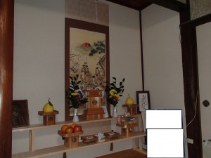 床の間は、神棚も新しく作成し、床を新しく貼り替え、壁・天井は既存の壁に和調のクロスを貼っています。