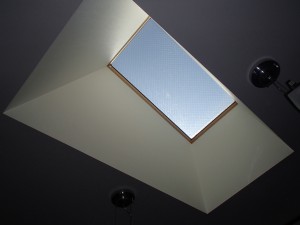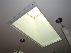 天窓の対策は内窓を設置し、その上から天井用のブラインドを設置しています。 工事も一日で完了し、お客様も大変喜んで下さいました!