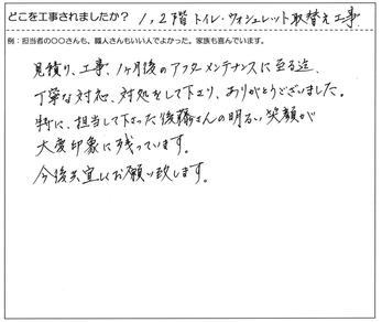 1・2階トイレ・ウォッシュレット取替え工事をされた、お客様の声です。